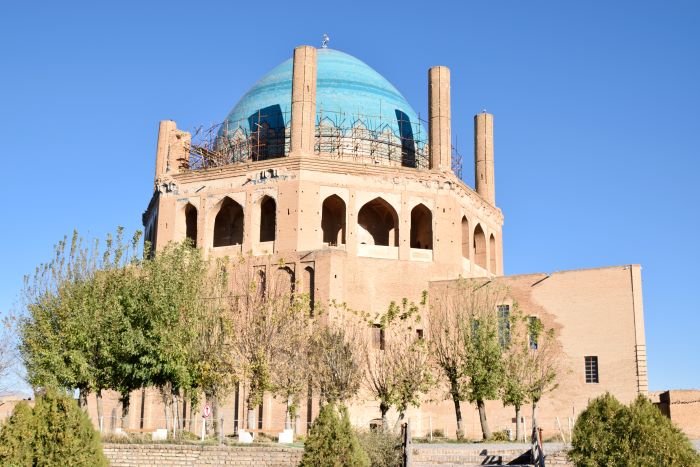 | • گنبد سلطانیه مقبرهٔ محمد خدابنده الجایتو است که در ۱۳۰۲ تا ۱۳۱۲ در شهر سلطانیه (پایتخت ایلخانیان) ساخته شد و از آثار مهم معماری ایرانی و اسلامیبهشمار میرود. این بنا از حیث معماری و تزیین و بزرگی در دنیا مشهور است. رنگ گنبد آبی است. بر روی این اضلاع گنبد بلندی قرار گرفته که ارتفاع آن را ۱۲۰ گز نوشتهاند. |